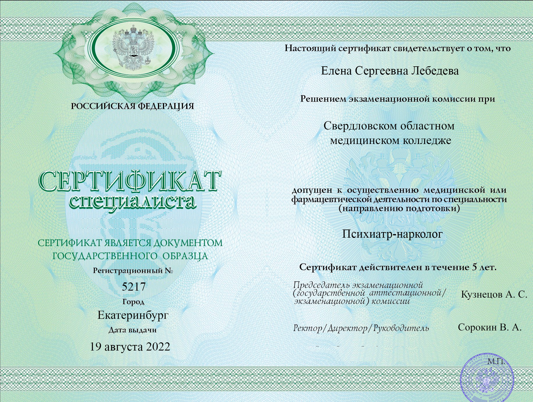 Елена Сергеевна Лебедева врач нарколог клиники доктора Стукаловой в Авдеевке